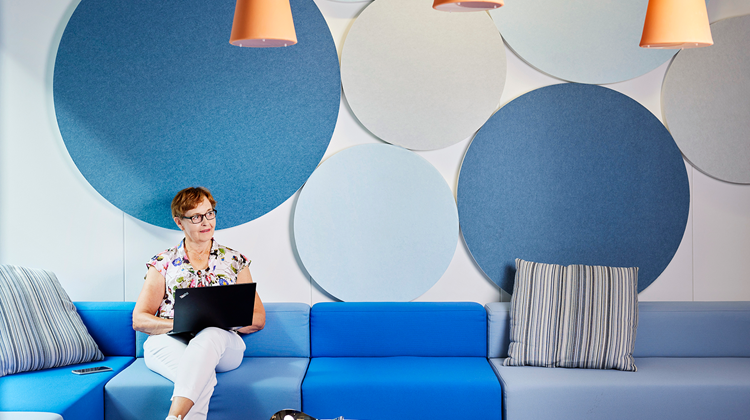 Henkilöstöpäällikkö Ulla-Maija Seppä pitää tyylikkäitä toimitiloja merkityksellisenä myös yrityksen imagon kannalta. ”Haimme toimitiloilla myös näkyvyyttä, ja sitä olemme kiitettävästi saaneet.”